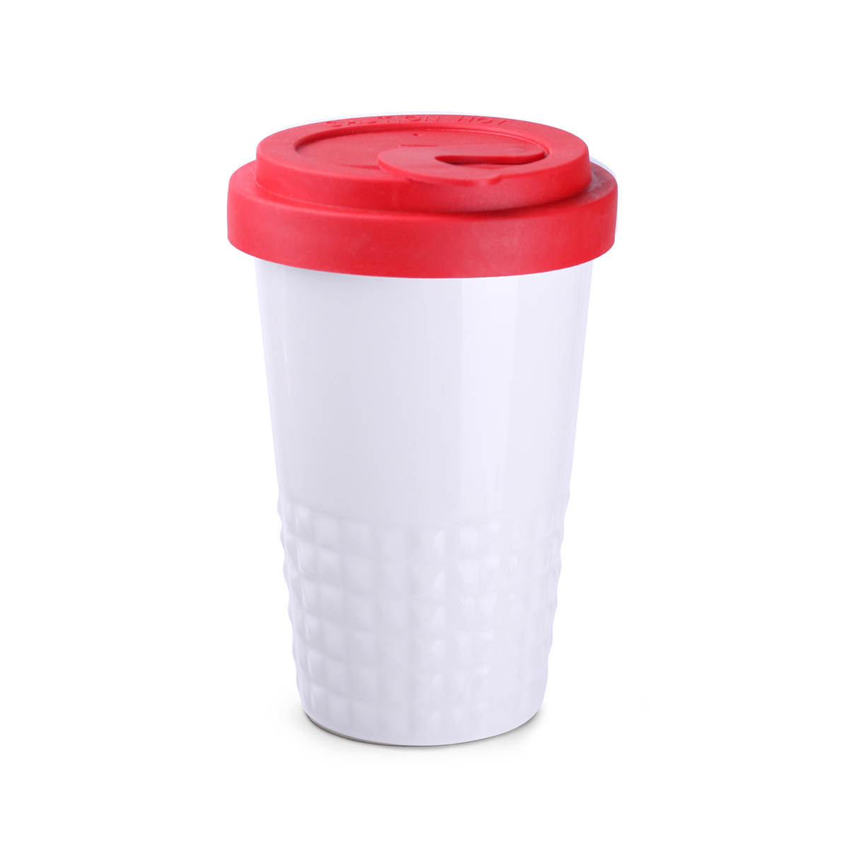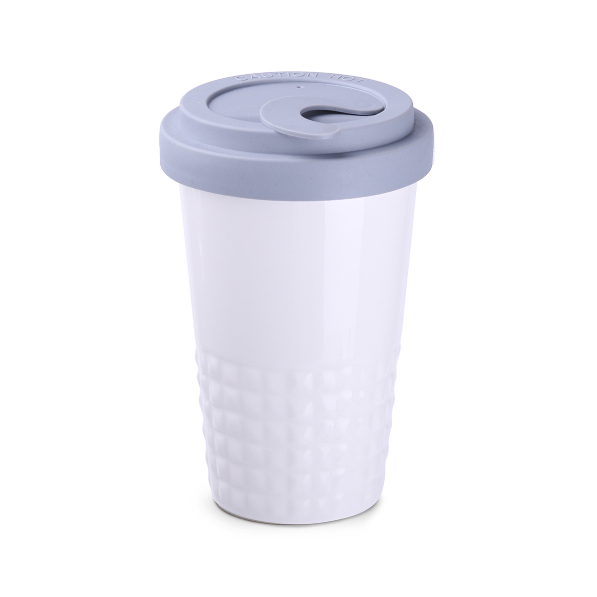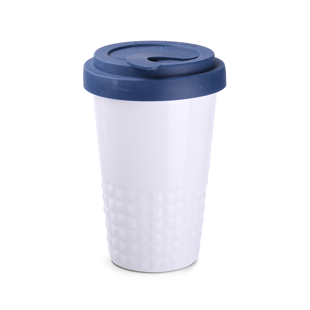 Nowość na rynku ceramiki reklamowej. Subtelne wykończenie dolnej części kubka w formie symetrycznych wypustek. Porcelanowy kubek dwuścienny, zapewniający doskonałą izolację ciepła. Wyjątkowo szczelna przykrywka. Model dla aktywnych.